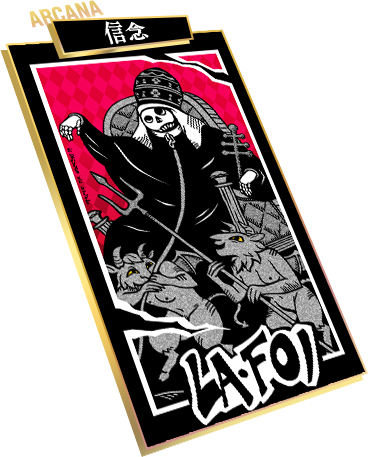 舞踏会に参加するかのように華麗なケープと煌びやかなガラスを身にまとった美しいシルエットが特徴。胸に抱いた時計は何を意味するのか。